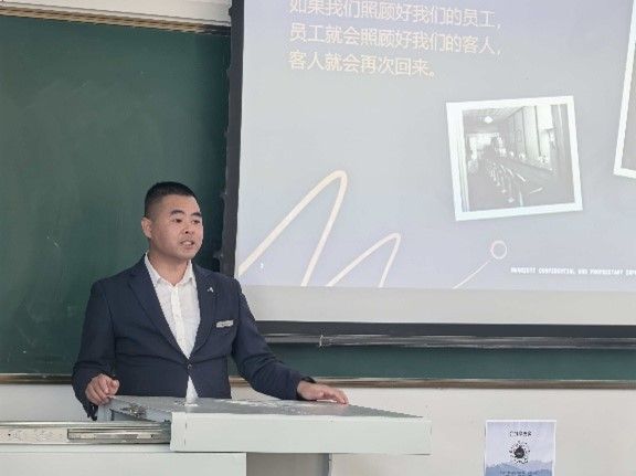 五台山万豪酒店朱经理以“品牌传承与价值引领”为主题,系统介绍了企业发展历程。自1927年由约翰(J. Willard Marriott)先生创立以来,万豪酒店始终秉持“以人为本”的核心价值观,从初创的根汁啤酒摊成长为全球酒店行业的领军品牌,其深厚的企业文化底蕴与规范的运营管理体系,让在场学子对品牌实力与行业发展前景建立了清晰认知。