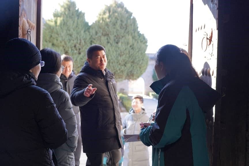 在古建筑解析环节,师生结合实物开展现场教学。在湘峪古堡,分析了砖石砌筑工艺与木质构件的榫卯特点,解读装饰纹样背后的社会文化内涵;在柳氏民居,则聚焦于材料、结构及构件细节,阐释其承载的明清晋商民居风格。通过专业理论与实地观察相结合,深化了景区人员对古建筑价值的认知与阐释能力。