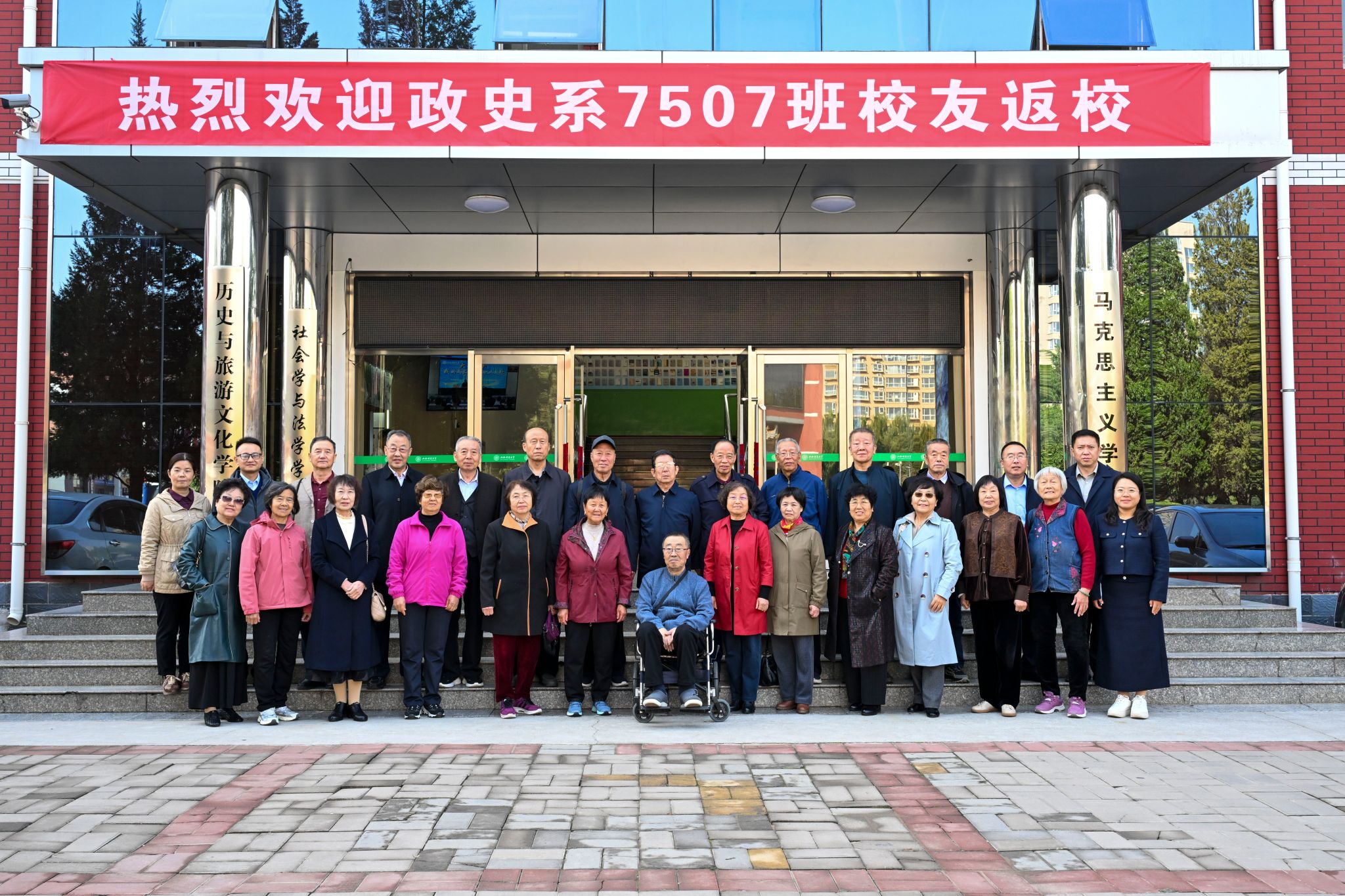10月14日,政史系7507班级20余名校友重返母校,在一号教学楼历史与旅游文化学院会议室举行了座谈会,追忆与母校往昔时光,共话五十载同窗情深。校党委常委、副校长范哲锋出席会议,校友工作办公室副主任龙勋、李莉静以及学院领导和相关教师参加了座谈会,座谈会由院党委书记王玮主持。