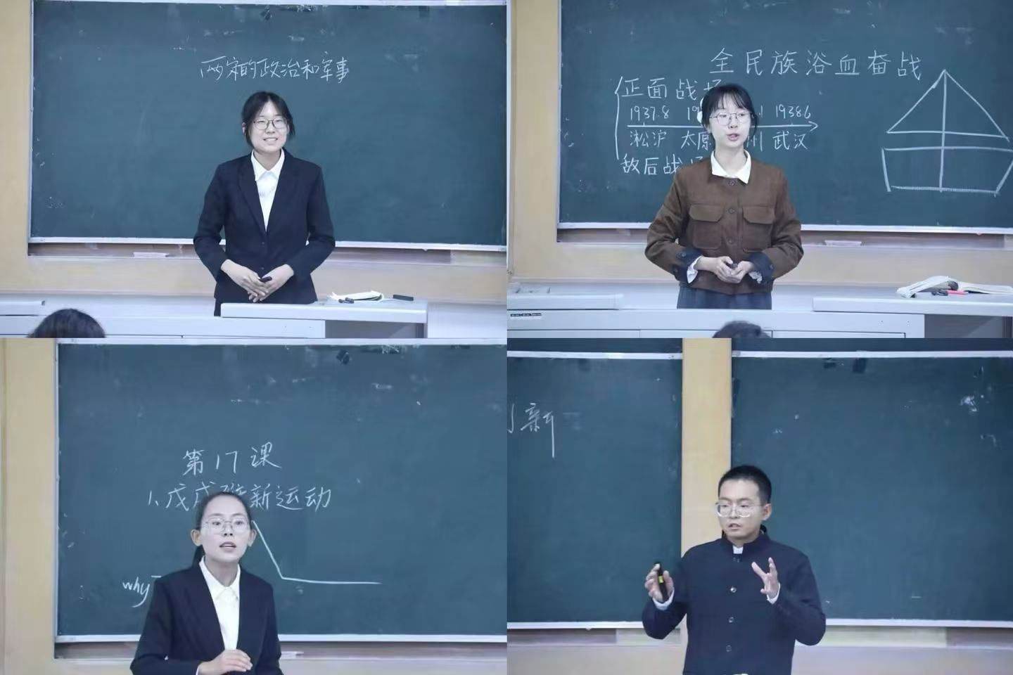 决赛分为即席演讲和模拟授课两个环节,从教案设计、即席演讲、模拟讲课、课件制作和板书设计五个模块对选手进行综合考察和评价打分。在即席演讲环节,各参赛选手充分结合教育理论与自身思考,见解独到、逻辑清晰,以青春之姿展示出新时代未来教师的专业素养与育人情怀。在模拟授课环节,从课堂导入到知识点讲解,从互动设计到板书呈现,选手们结合中学历史教材的篇目与子目,以良好的精神风貌、生动的教学讲解、精美的课件展示,赢得了台下评委和观众的高度认可。