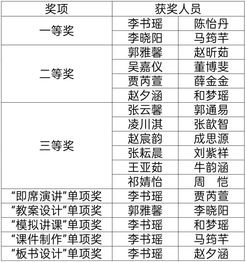 本次比赛通过同台竞技、共同交流,为同学们未来走入实际的课堂教学奠定了基础,不仅有利于提高同学们教学能力与综合素质,更推动了学院学风建设和人才培养上的进步。参赛选手们纷纷表示,将把比赛中的收获转化为成长动力,锤炼教学本领,努力成为新时代的“四有”好老师。