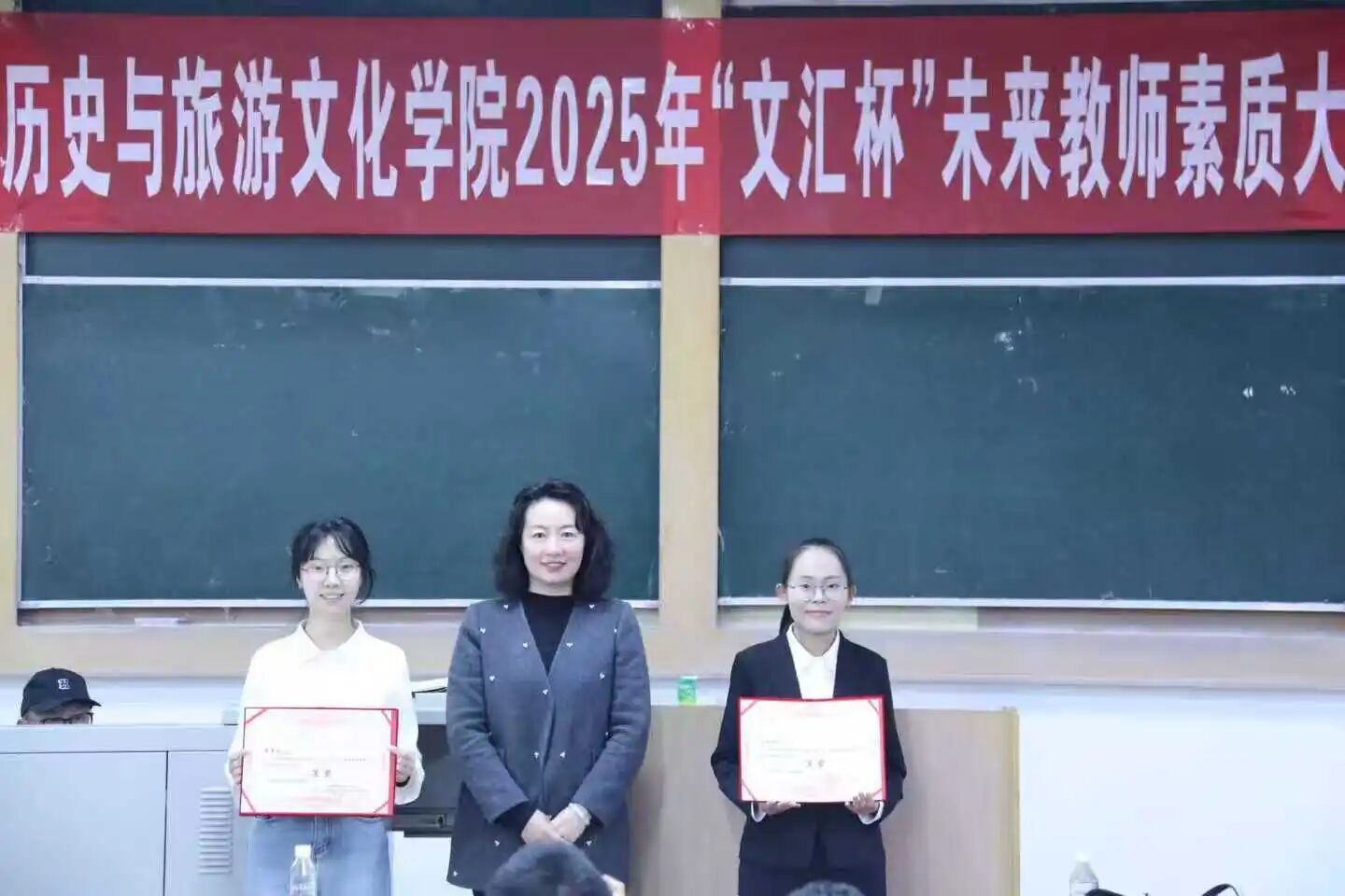 三尺讲台试锋芒,教坛新秀竞风采。为提高未来教师的专业技能,在以赛促练,以赛促学中丰富课堂教学实践经验,我院于10月18日上午举行了“文汇杯”未来教师素质大赛决赛。本次比赛邀请了院党委书记王玮老师、历史系主任刘长新老师、王惠荣老师、樊百玉老师、雷鹄宇老师、贾亚宾老师担任评委,24位选手各展所长、各显风采,诠释着对“师者”角色的理解与向往。
