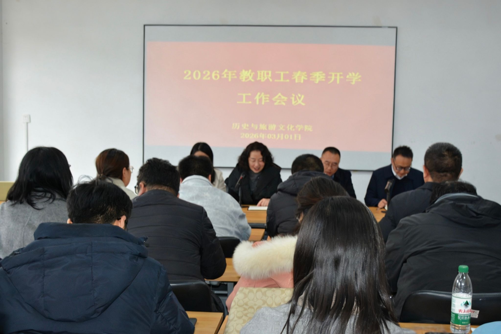 为统一思想、明确任务,扎实推进新学期各项工作有序开展,3月1日下午,我院在一号教学楼二层会议室召开2026年春季教职工开学会议。会议由院党委书记王玮主持,全体教职工参会。